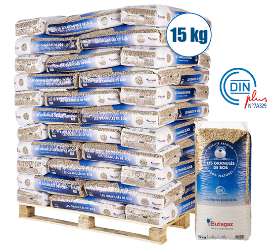 Peu de cendres : Nos granulés de bois produisent peu de cendres et permettent à vos poêles à pellets de ne pas se boucher et de rester performant. Nos granulés sont 100% résineux, certifiés DIN-Plus (DIN+) et conditionnés en sacs de 15 kg. La performance de votre poêle exige un combustible de grande qualité.